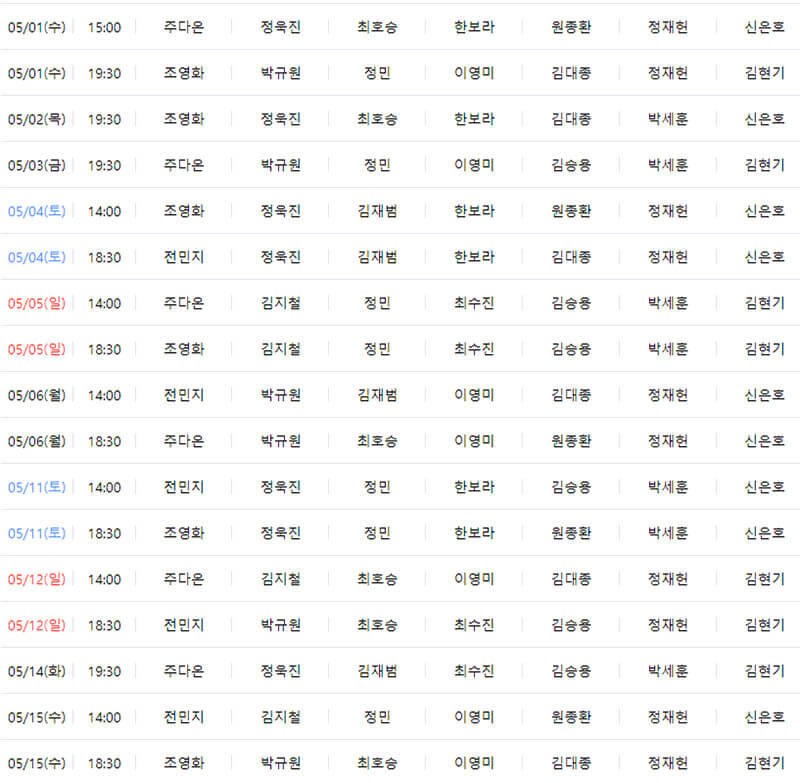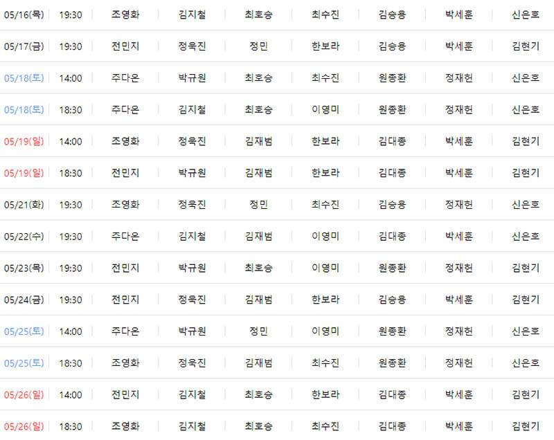 5월 공연 일정입니다.