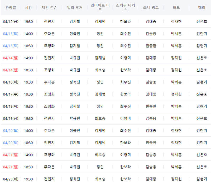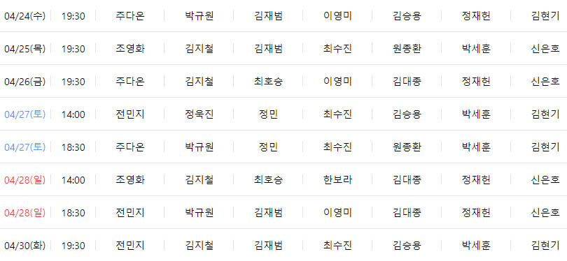 4월 공연 일정입니다.