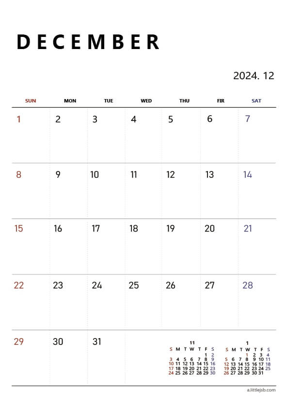12월 공휴일은 수요일 성탄절이 있습니다.