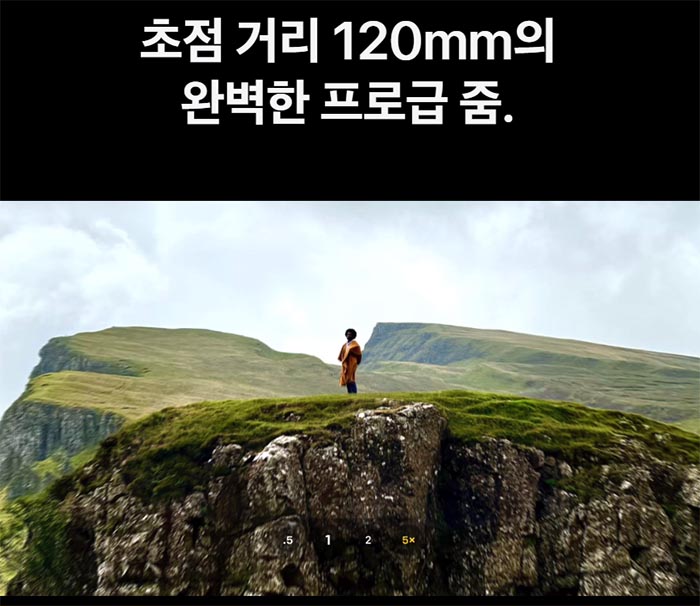 프로 맥스는 5배 망원 카메라가 지원되어 먼 거리에서도 선명한 클로즈업 사진을 찍을 수 있습니다.