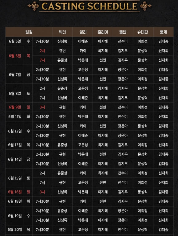 프랑켄슈타인 캐스팅 스케줄
