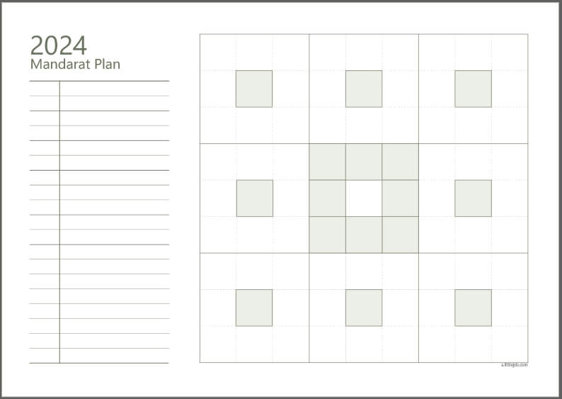 만다라트 양식입니다. A4 사이즈로 만들어 보았습니다. 컬러는 4가지 컬러 그레이, 그린, 블루, 브라운 컬러입니다.