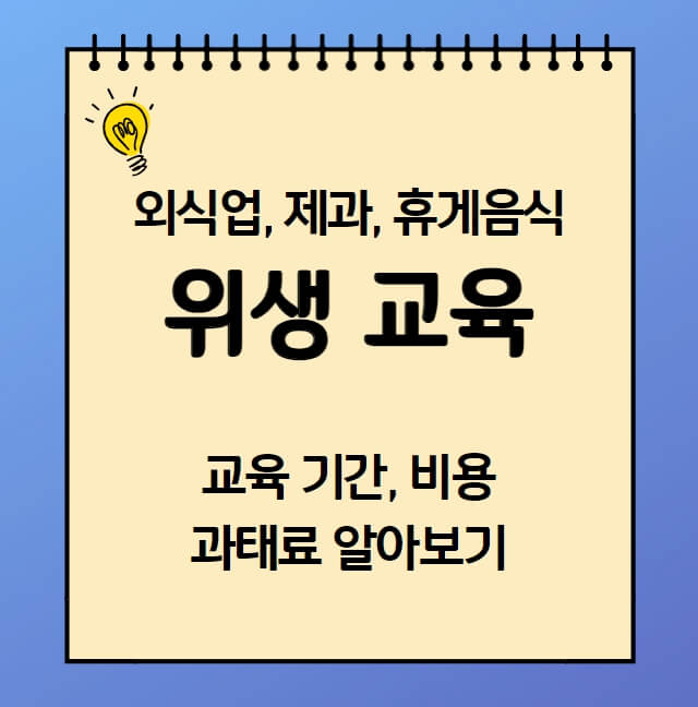 기존의 식품 관련 영업자는 온라인 위생 교육을 12월 31일까지 수료해야 합니다. 기간 안에 수료를 하지 않으시면 과태료 처분을 받을 수 있으니 기간 내에 꼭 받으시길 바랍니다.